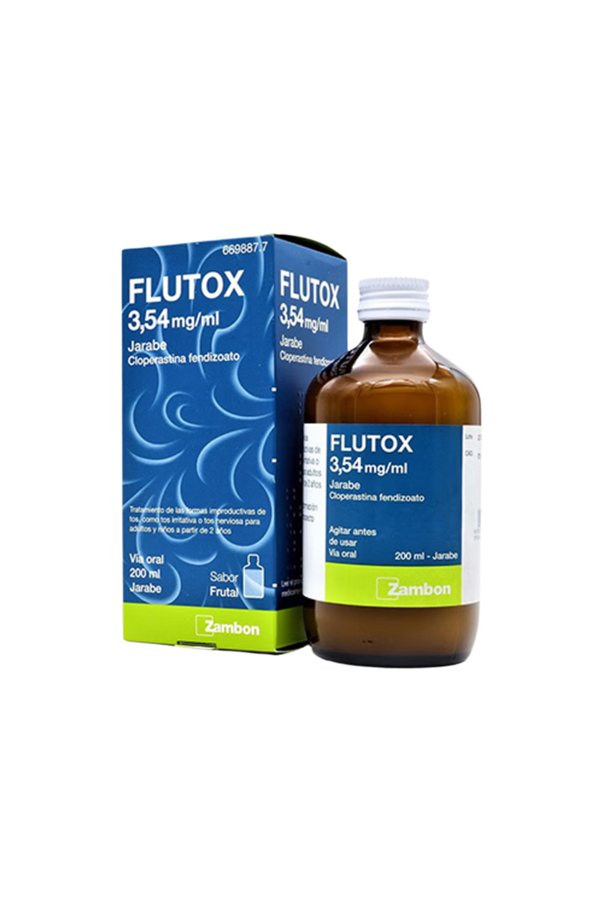 Flutox jarabe es un medicamento antitusivo que se utiliza para tratar la tos seca o irritativa. Su principio activo es la Cloperastina. Este jarabe para la tos tiene sabor a plátano. Es apto para niños a partirde 2 años y adultos, pero los niños deben tomar una cantidad concreta dependiendo del grupo de edad al que pertenezcan. Este jarabe cuenta con un dosificador que sirve para contar las dosis recomendadas para cada caso. La duración del tratamiento con Flutox jarabe es de 7 días.