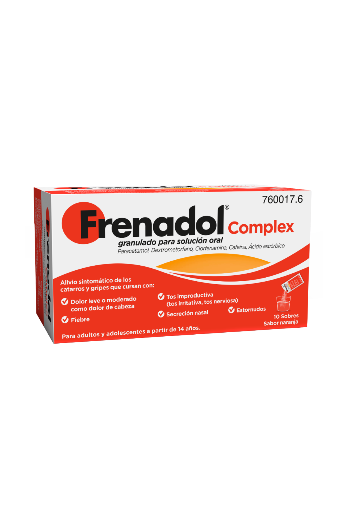 Frenadol Complex es un medicamento indicado para el alivio sintomático de gripes y catarros, con dolor leve o moderado, como por ejemplo de cabeza, además de fiebre, tos improductiva (tanto irritativa como nerviosa) y secreción nasal.