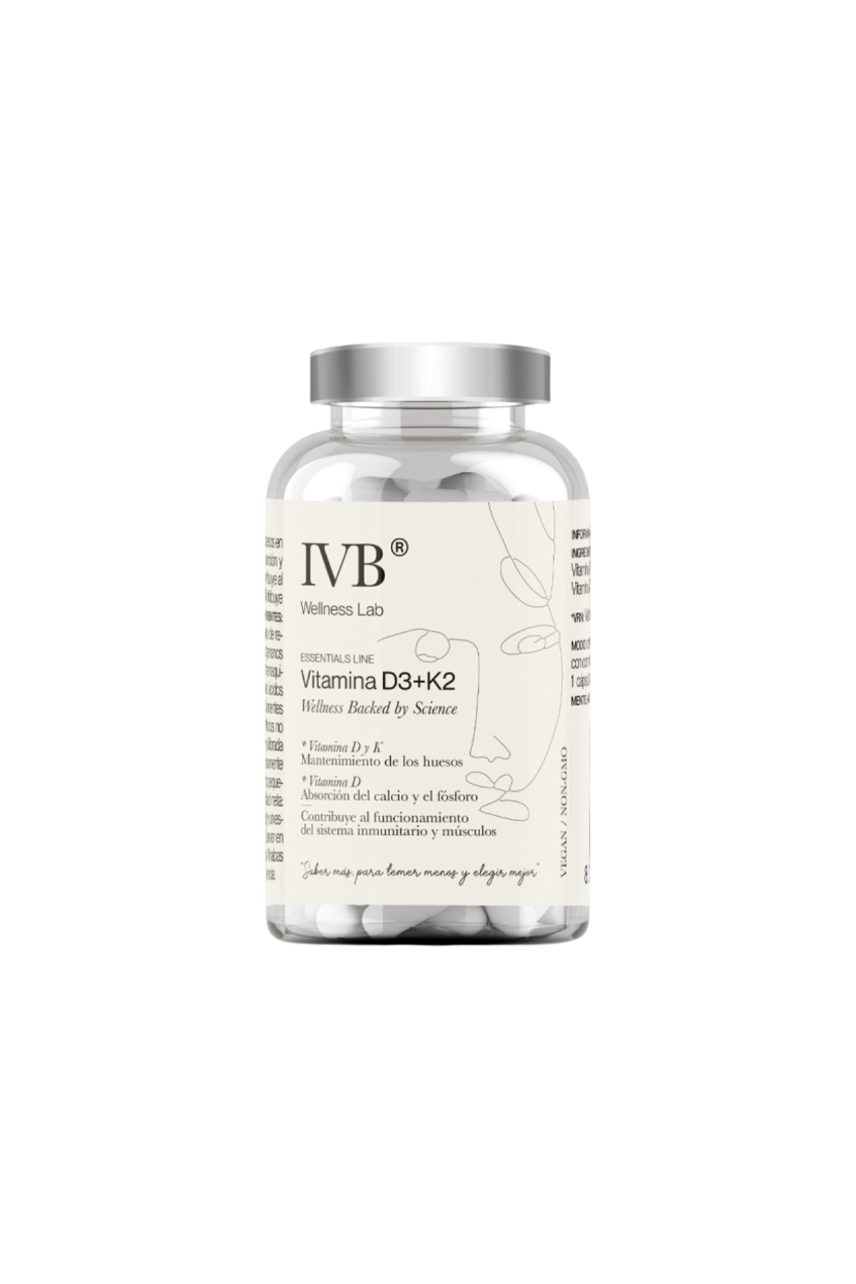 IVB Vitamina D3+K2 apoya la salud ósea y muscular al contribuir a la absorción y utilización normal del calcio y el fósforo. Además, contribuye al funcionamiento adecuado del sistema inmunitario. Pareja clave de vitaminas que contiene 1000 UI vitamina D3 y 45 mcg de vitamina K2, concretamente Menaquinona 7, la mejor patente del mercado y con más estudios científicos.