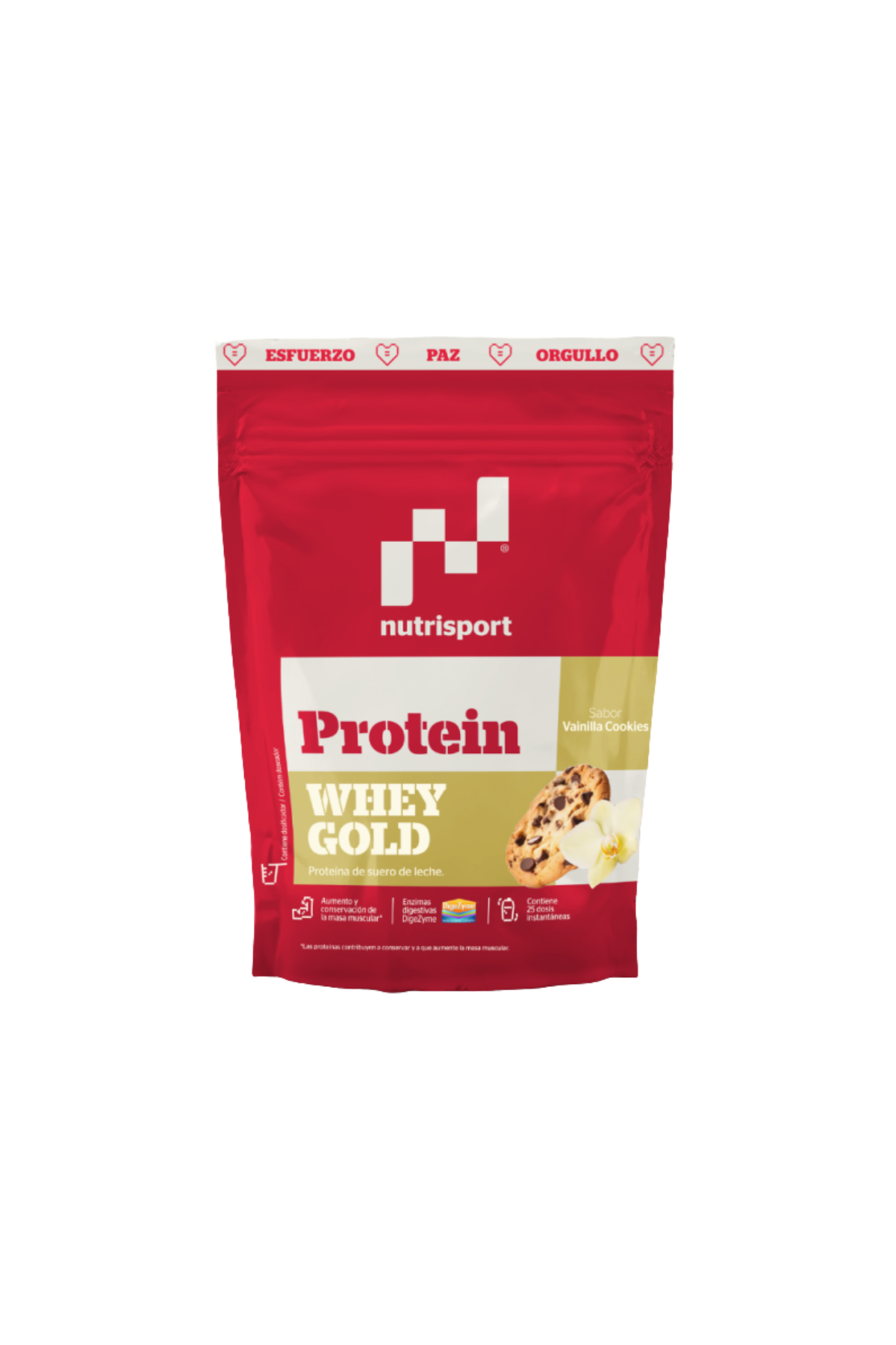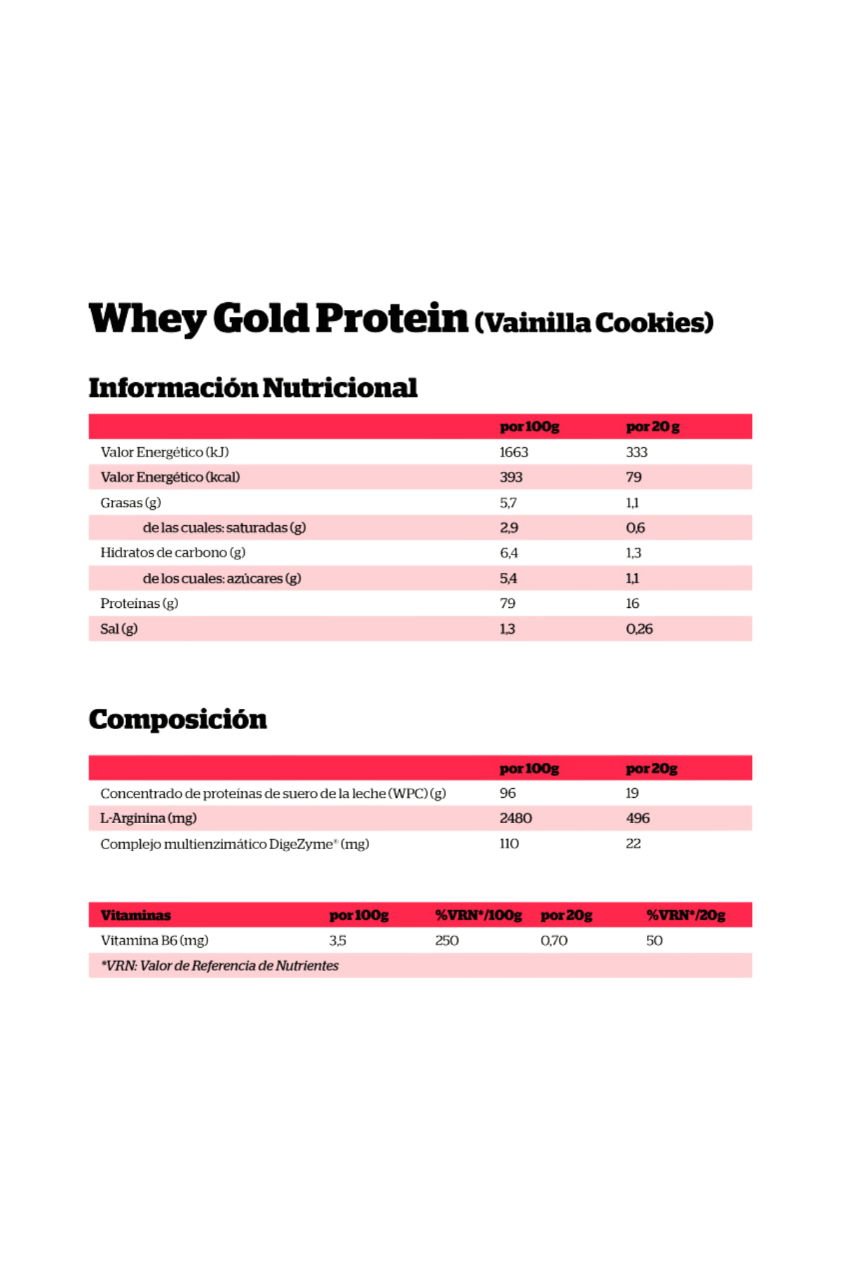 Whey Gold Protein con DigeZyme con los benefeicios de siempre y, además, enriquecido con DigeZyme, una mezcla patentada de enzimas digestivas para una mayor digestión y aprovechamiento de los nutrientes. Whey Gold Protein es una proteína de suero de leche de máxima calidad, compuesta únicamente por concentrado de suero lácteo (WHEY). Es perfecta para después del entrenamiento, pues contribuye a la conservación o aumento de la masa muscular gracias a su rápida absorción. Contiene dosificador, cada dosis equivale a 20g.